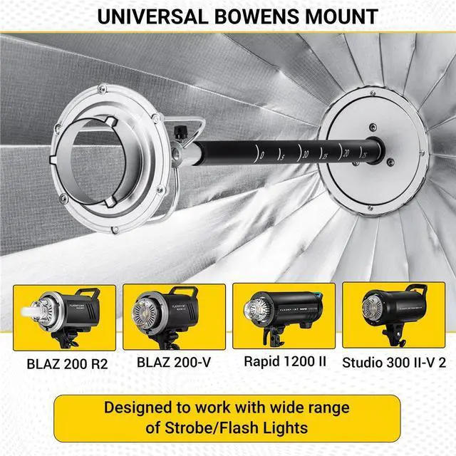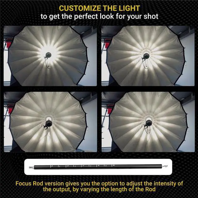 The Glow Profond Quick-Open Deep Octadecagon Softbox with Focus Rod is one of the most exquisitely designed light modifiers to hit the photo-verse. Discover a perfectly softened source of luminance that gracefully meets your subject after traveling through the Glow Profond physic and radiates through the opulent boule. From the most prominent 70" to the smallest 27" model, these superbly efficient light modifiers from Glow, utilize the impressive Quick-Open system for rapid setup, painless disassembly, and convenient storage. Gone are the days of injured digits attempting to pull up on the rods to secure into lock position or to release the rod spokes for deployment.
