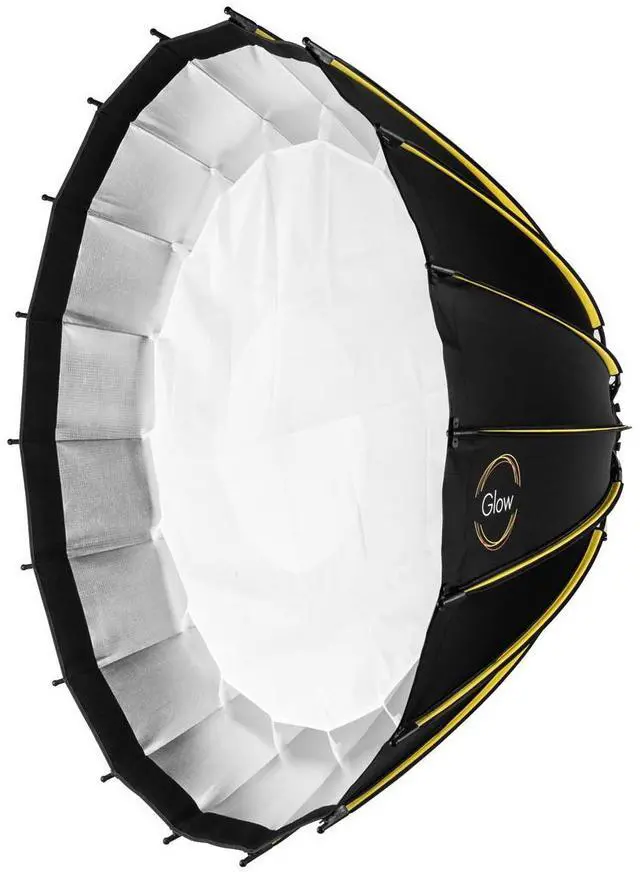 The Glow Profond Quick-Open Deep Octadecagon Softbox is one of the most exquisitely designed light modifiers to hit the photo-verse. Discover a perfectly softened source of luminance that gracefully meets your subject after traveling through the Glow Profond physicand radiates through the opulent boule. From the most prominent 70" to the smallest 27" model, these superbly efficient light modifiers from Glow, utilize the impressive Quick-Open system for rapid setup, painless disassembly, and convenient storage. Gone are the days of injured digits attempting to pull up on the rods to secure into lock position or to release the rod spokes for deployment.