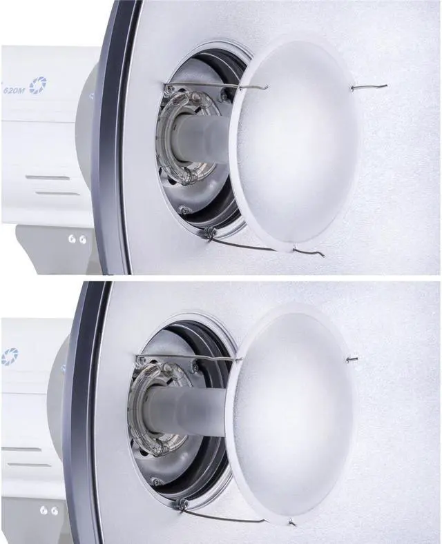 Instead, light is bounced backward, filling the larger bowl of the beauty dish and casting a wide, soft light that surpasses standard reflectors and mitigates the harshness of a speedlight. For added control, the position of the center reflector cap is adjustable, allowing you to fine-tune the spread of light and accommodate tall or high wattage modeling lights. The included diffusion fabric, commonly known as a "sock, " fits snugly over the rim of the dish, softening the focused light and reducing contrast for beautifully soft shadows and catchlights reminiscent of natural window light.