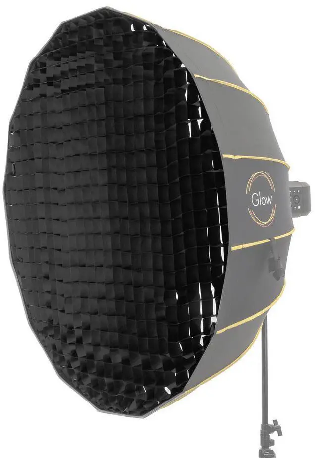 It expertly feathers hard light to form attractive shadows, enhancing the overall quality of your photography. This lightweight accessory easily attaches to the rim of the beauty dish with a self-securing closure strip that follows the grid's perimeter. This ensures a secure fit and easy assembly, making it an ideal choice for photographers on the go. The Glow EZ Lock Beauty Dish series is renowned for glamourizing subjects, from head and shoulders portraits to dramatic figure studies. It's an optimal tool for mastering all shooting situations where quality counts. The Glow 42" Eggcrate Grid shines in tight spaces where traditional softboxes and umbrellas may not fit comfortably.