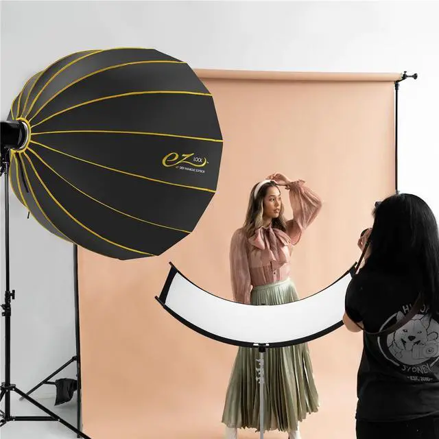 The finely finished silver interior lining makes it easy to achieve magnificent specular highlights, brings out sharp details, and provides the most focused indirect lighting, along with soft shadow definition. Enjoy a crisp, brilliant throw that can be tamed with a clever diffusor place just so. The severe parabolic reflector shape directs all the light in one controllable direction. With much attention to minutia inits tough build, from resilient form-fitting fabric to flexible aluminum frame ribs, this GLOW EZ LOCK 48" DEEP PARABOLIC SOFTBOX sets the standard for portable light control for people and subjects