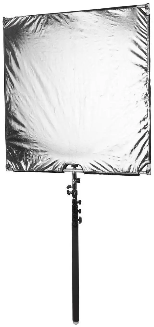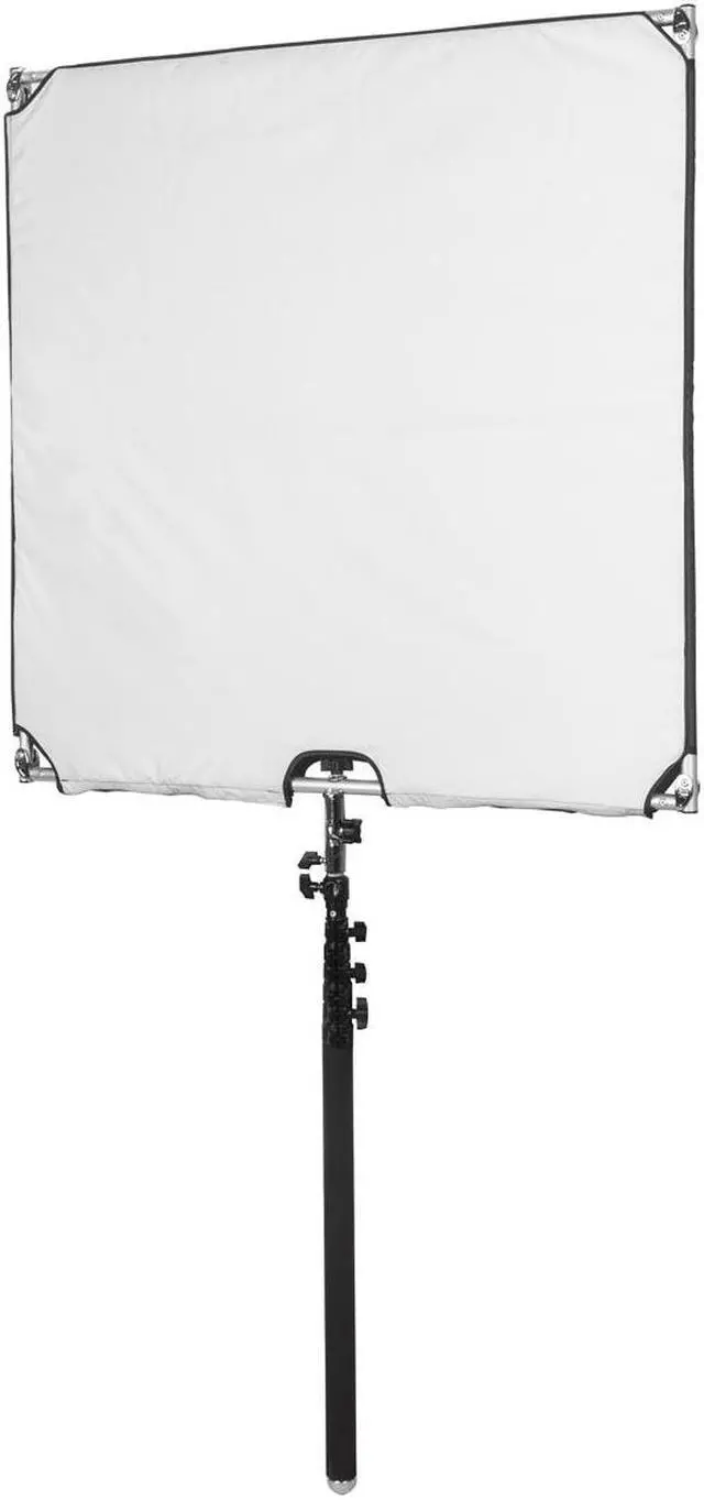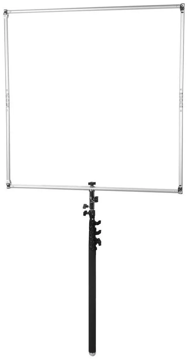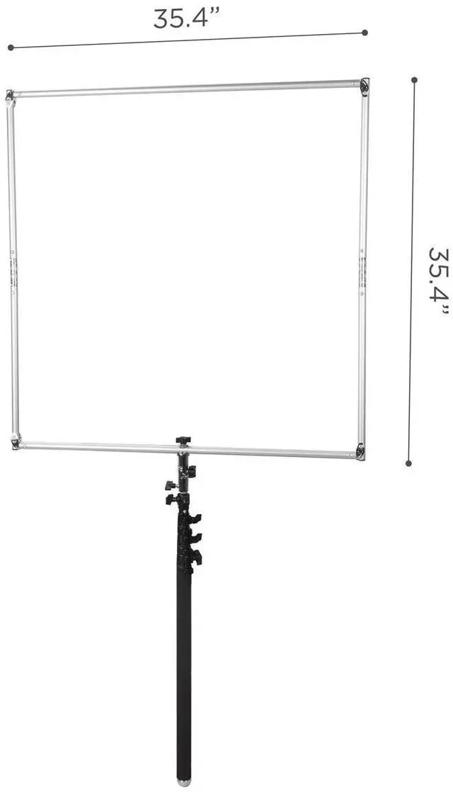 The arm is cushion-wrapped for comfort and features flip lock sections for easy adjustment. The base of the pole arm is adorned with a polished metal half-sphere, and the lightweight tubular anodized aluminum frame is hinged and jointed to form a solid square. This frame is reinforced with self-locking levers and a bolted assembly for secure attachment to your preferred support stand. Whether you're shooting outdoors or in the studio, this kit offers you the ability to control diffusion and strength reduction, enabling you to achieve flattering portraits and fashion images. The Glow Sun Scrim Reflector Panel Kit with Boom Arm collapses to fit into a handy carrying bag, ensuring it's always ready for your next shoot.