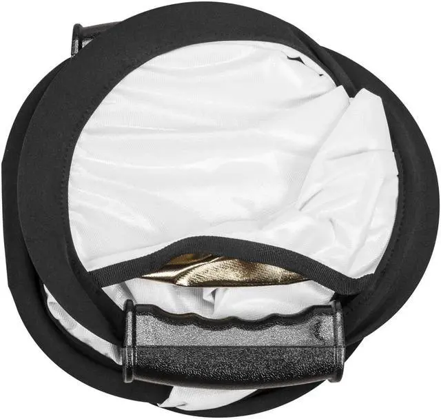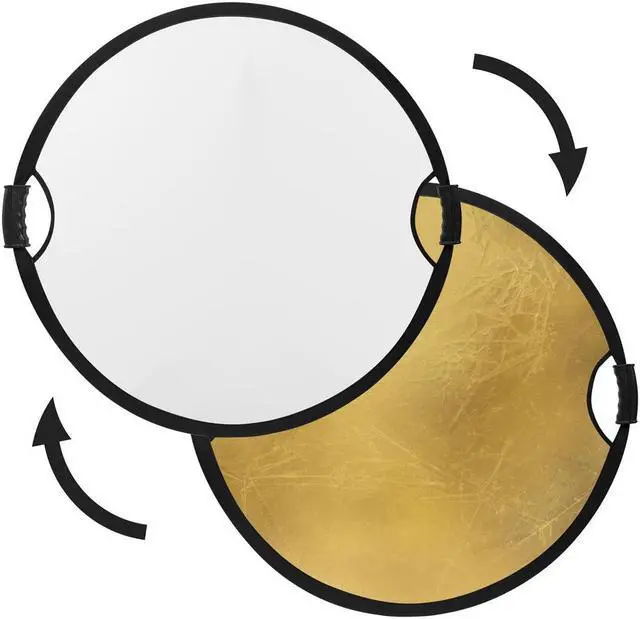 If you're seeking to enhance your photography lighting setup, consider the 22" Glow Collapsible Circular Reflector with Handles in Gold/White. This versatile, two-sided light modifier allows you to effortlessly switch between warm golden hues and soft white shades, providing optimal flexibility for your shoots. Constructed with a robust, flexible steel frame, this circular reflector is designed for durability and ease of use. It can conveniently be folded down to a third of its full size, making it an ideal choice for photographers on the go. The Glow Collapsible Reflector is equipped with two ergonomic handles, ensuring a comfortable grip and precise control over your light direction.