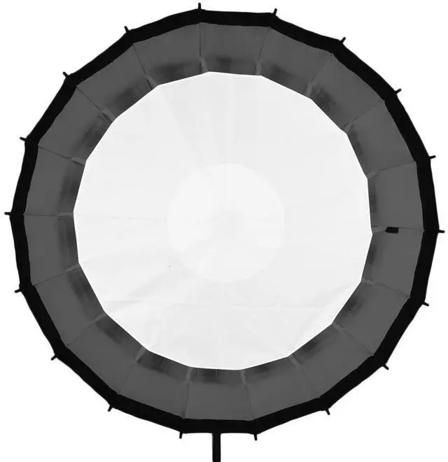 This allows for a greater range of creative expression, whether you're shooting full-length figures, fashion, large group shots, celebrity portraits, lifestyle images, or commercial assignments. The Profond Quick-Open Deep Softbox not only serves as a powerful keylight but also doubles as an effective reflector, seamlessly blending with daylight or additional fill soft lights. With the addition of the outer diffuser shield, you can effortlessly transition from a sharper light wash to a softer, less harsh lighting effect, providing versatility in your lighting setup. Independently, the inner diffuser minimizes hotspots while preserving the 'pop' of the silvered rim of material extending beyond its position.