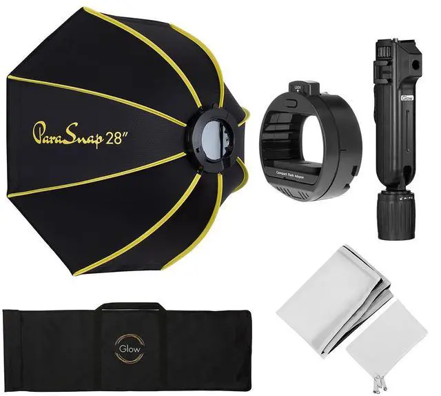The Glow ParaSnap PS-B28K 28" Octagonal Softbox for Speedlight is an essential lighting accessory for photographers who prioritize speed, efficiency, and superior lighting quality. Engineered with Glow's innovative SterlingFibre Silver Lining, this softbox maximizes light efficiency, ensuring your subjects are illuminated with exceptional brilliance and precision. Its compact 28-inch octagonal design is ideal for portrait, fashion, and creative photography, whether in a studio or on location. Included in this comprehensive kit is the Glow OTA-S Adapter, specifically designed to integrate seamlessly with your on-camera flash. This adapter allows for magnetic attachment of flashes to the ParaSnap, providing a quick, secure, and flexible lighting setup.