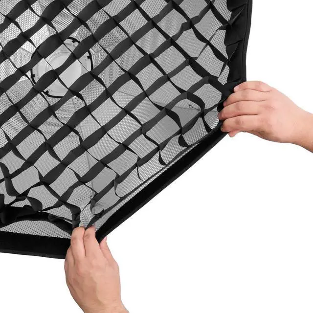 The high-quality construction of this egg crate grid not only promises longevity but also boasts a lightweight design for effortless handling. It attaches seamlessly to the rim of the softbox using a self-securing closure strip that encircles the grid's perimeter, providing a secure fit without the hassle of additional tools or complicated assembly. Crafted for photographers who value both time and efficiency, the Glow Heavy Duty Egg Crate Grid features a design that complements the swift setup and breakdown of the ParaSnap Softbox. This innovative system allows for a rapid transition from closed to fully operational in a simple swing and snap motion, saving precious time on set.