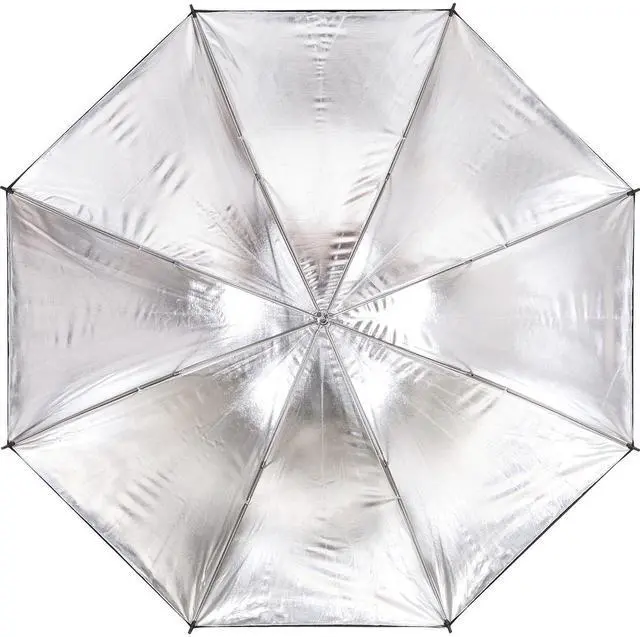 Under the Glow brand, the 40" Silver Umbrella emerges as an essential tool for photographers seeking to enhance their lighting setup with a durable, stylish, and functional accessory. Crafted with meticulous attention to detail, this high-quality umbrella is engineered to deliver an even and diffused lighting effect, ensuring maximum output with pronounced shadow contrast for dynamic imagery. The robust construction of the Glow 40" Silver Umbrella, from its resilient fabric to its sturdy frame ribs, sets a new standard for portable light control. Its design may appear straightforward, yet it boasts a black opaque layer that effectively minimizes light loss through the white interior fabric.
