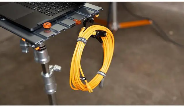 The AeroTrac Hook set offers a simple, efficient way to manage loose gear on set. Attach self-leveling hooks to the AeroTrac's track system to hang cables, cords, bags, or lanyards and keep your workspace organized. Lightweight, durable, and easily reposition.
