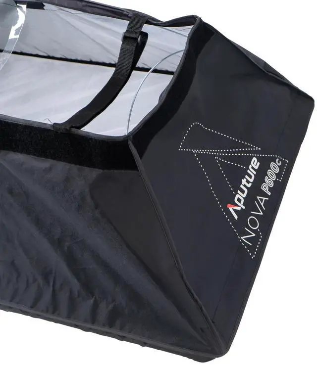 It is the epitome of professional lighting control, meticulously crafted for the Nova P600c LED Soft Light Panel. This high-quality softbox is engineered to transform harsh lighting into a soft, diffused output, ideal for creating the perfect ambiance in photography and videography. Constructed from durable black nylon, it boasts a sleek, rectangular shape with smoothly rounded edges, ensuring a uniform spread of light. The interior of the softbox is lined with reflective silver, maximizing the light output efficiency while maintaining true color fidelity. Its easy-to-use design includes a speedring that facilitates quick and secure attachment to your Nova P600c LED panel, as well as compatibility with a range of Aputure lights, highlighting its versatility in adapting to various lighting setups.