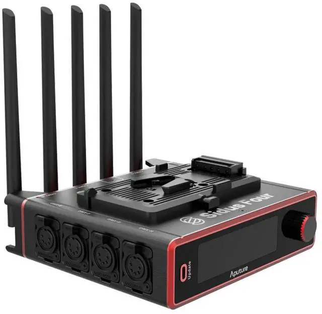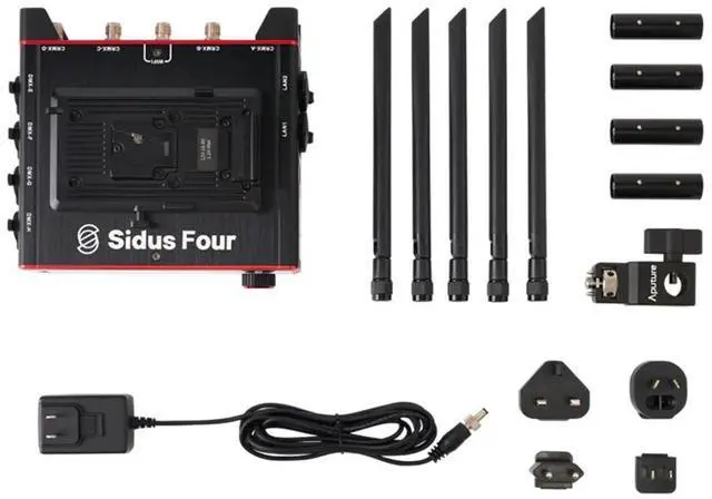 Unlike other transmitters with only IP20 ratings, the Sidus Four is ready to anchor your lighting network in any weather condition. Power your network confidently with the Sidus Four's versatile power options. In addition to its AC power input, it features a V-mount battery plate and an 80-minute internal backup battery, ensuring uninterrupted operation even during power outages. This transmitter offers the longest-running backup battery available and is among the few with a built-in V-Mount battery plate. Achieve reliable long-range signal reach with the Sidus Four's set of five dual-band antennas, servicing both Wi-Fi and CRMX signals with an impressive wireless range of 800 meters (2, 625 feet).