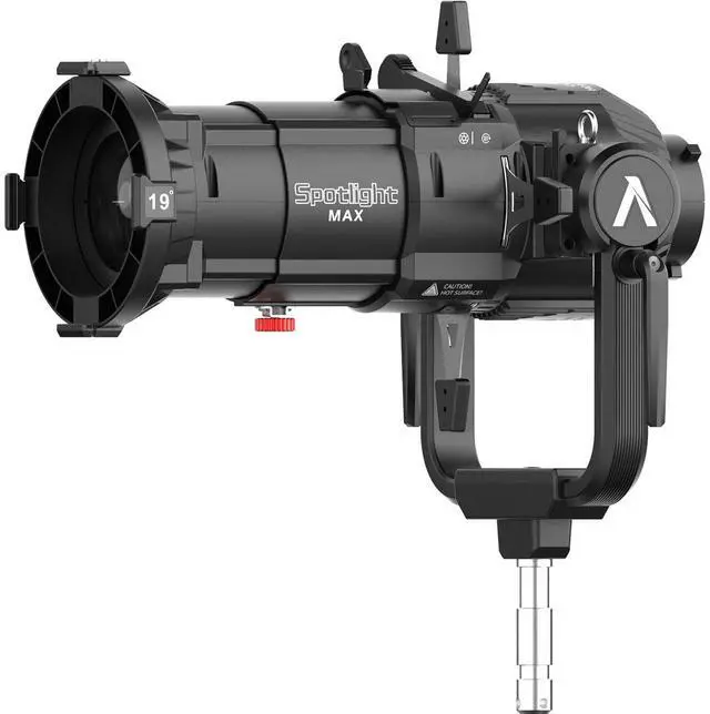 Enhance your photographic and videographic capabilities with the Spotlight Max Projection Lens Modifier Kit with a 19-degree lens and Bowens Mount. This high-quality, durable lens modifier is designed to provide an advanced level of control to high-output Bowens Mount point-source fixtures, transforming them into a powerful spotlight with a further reach and evenly distributed, shapeable output. The Spotlight Max's interchangeable lenses are versatile tools for filmmakers and photographers who need to precisely shape their light. Whether you're shaping your light through a perfectly circular spotlight, using the built-in shutters to create frames of light, or utilizing gobos to project unique patterns, this innovative lens modifier kit features precision optics that will elevate the capabilities of your high-output Bowens Mount point-source light.