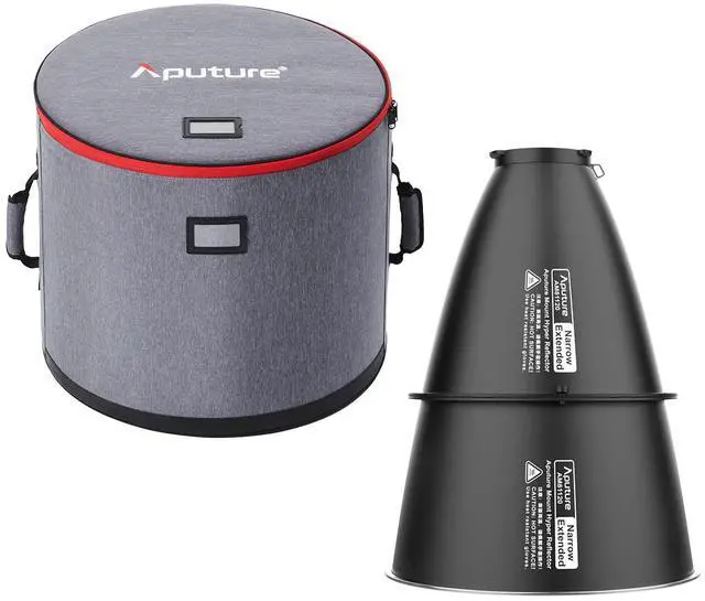 The Aputure STORM XT52 Reflector Kit adds two additional reflectors to the 35 Degree medium reflector included with the STORM XT52. The 25 Degree narrow reflector and 50 Degree wide reflector are tuned for optimal performance with the STORM XT52, producing even beams with no color fringing. An included extension tube converts the 25 Degree reflector to a 20 Degree hyper-narrow reflector. The included case has room and additional padding to also hold the 35 Degree wide reflector.