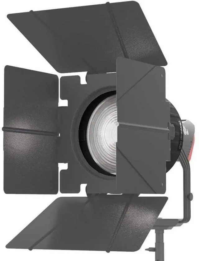 Compatible with the F10 barndoors, this F10 Fresnel Attachment for LS 600d LED & LS 1200d Pro Lights from Aputure allows smooth focusing of the light's beam spread from a tight 15° to a 45° medium flood. The Fresnel's design has built-in ventilation to prevent overheating while thwarting spill light.