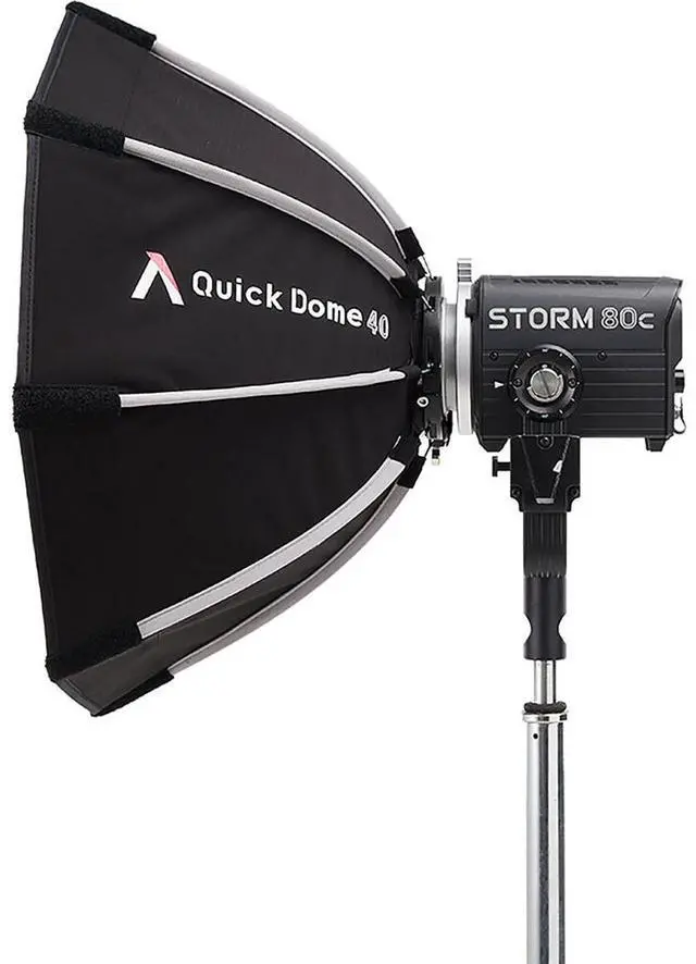 It includes both 1-stop and 2-stop front diffusion cloths, as well as a 40 Degree fabric light control grid, allowing creators to tailor softness and spill to suit tabletop composition, tight interview framing, or detail-oriented product work. Compact, lightweight, and optimized for rapid deployment, the Quick Dome 40 packs flat into its included carrying bag for effortless transport. As the smallest member of the Quick Dome family, it delivers efficient soft light shaping for filmmakers and content creators who rely on the STORM 80c to illuminate close-quarters environments and mobile shooting scenarios.
