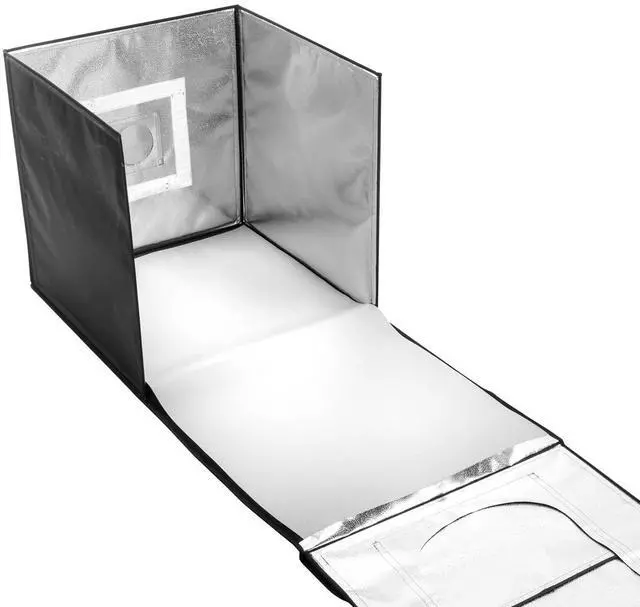 Overcome the challenges of product photography with the Glow 27" Studio Cube, a comprehensive solution designed to deliver exceptional clarity and that elusive shadow-free presence in your images. This portable shooting tent is equipped with brilliant built-in LEDs that bathe your products in pure 5400K color, ensuring consistent exposure across multiple shots. Ideal for creating high-quality photos for online sales, catalogs, auctions, or emails, this LED Studio Cube offers two camera portals for versatile shooting angles and perspectives. The integrated dimmer allows for easy control of lighting quality, enabling you to tailor the light diffusion to your specific needs.