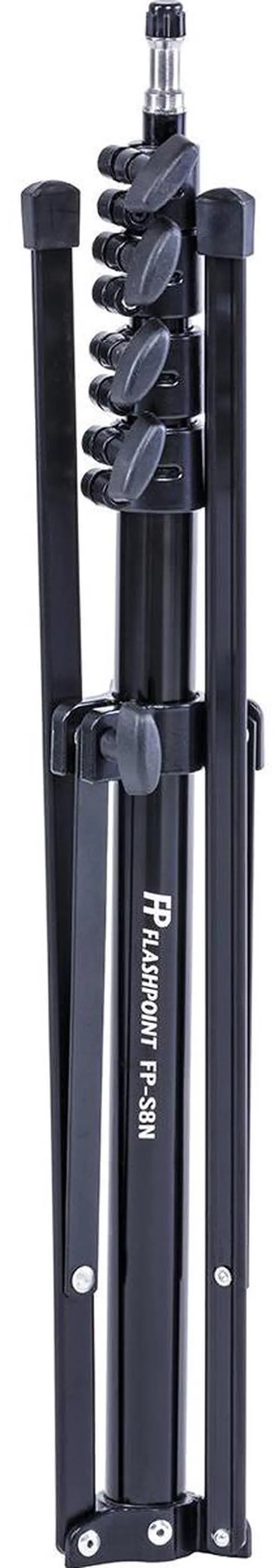 The Flashpoint FPLS8N Nano stand is your ultimate portable light support tool. Durable and versatile, carefully crafted from the finest lightweight yet sturdy materials, this stand is composed of all the features you need. With a collapsed length of just 22.5 inches, the foldback style legs make this stand much more compact for travel, while still maintaining stability. A standard ½" screw on a 5/8" stud, large, easy to turn knobs, variable tension, sturdy legs, rubber tipped feet, and lightweight balance and stability all combine to make this your perfect lightstand.