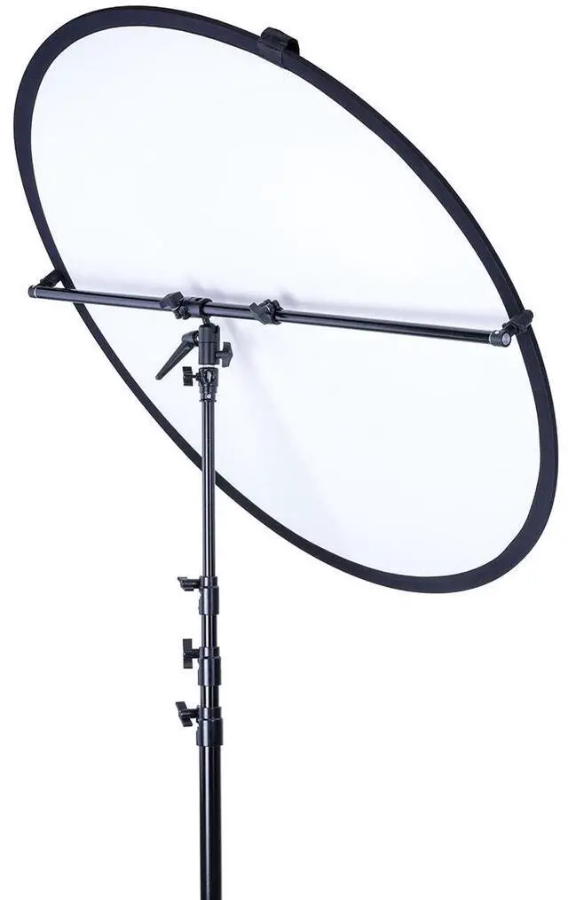 The Ballhead Telescoping Reflector Holder is also equipped with a sliding easy pinch design, ensuring quick attachment without the need to fumble with the reflector or require the assistance of another person. The holder's aluminum alloy rod can be telescoped to the required length to fit the reflector, providing a customizable solution for various shooting scenarios. To achieve optimal balance, simply position the rod above the central axis. All these adjustments can be made using the easy-to-turn knobs, making this holder a user-friendly tool for both amateur and professional photographers. Incorporating the Ballhead Telescoping Reflector Holder into your photography gear will enhance your lighting control, offering you the flexibility and precision to capture stunning images.