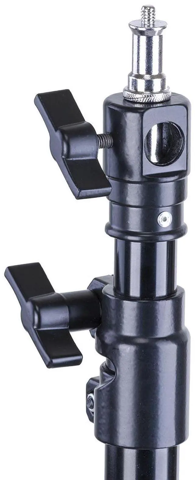 You can move safely and discretely from scene to scene and set up in areas where you would have difficulty extending the legs manually. Puts an end to the awkward routine of spreading legs and locking to achieve impressive multiple lighting effects. Even one-handed, on-the-run lighting setups are a breeze. The Flashpoint 7' Heavy Duty Air Cushion AutoStand Pro adjusts from about 2.76 feet to about 7 feet and folds down to 33 inches for storage or transport. The stand comes with a reversible 5/8" stud, with a 1/2"-20 thread on one end and 3/8" on the other, which can be mounted either vertically or horizontally as needed.