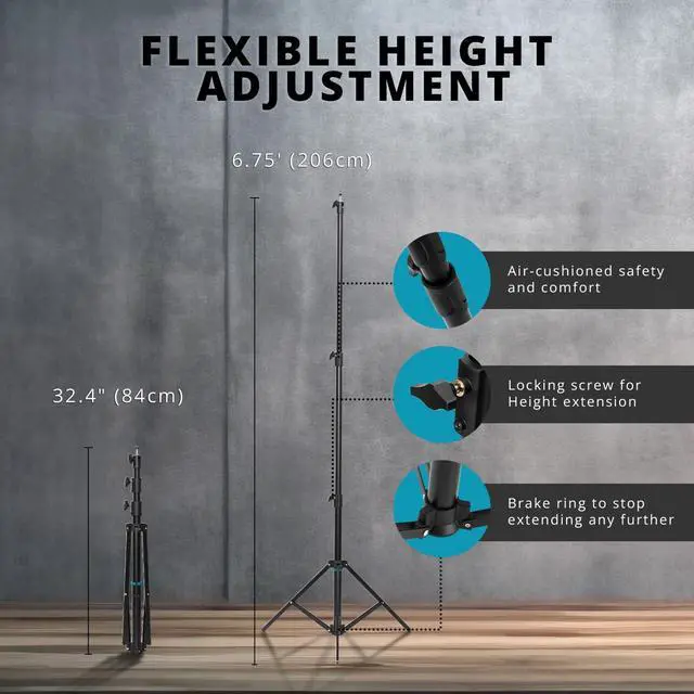 The Flashpoint 7' Heavy Duty Air Cushion AutoStand Pro is a second-generation ingenious light support that sets up quickly by placing the closed stand vertically on the floor, causing the legs to open automatically. The improved model dampens the mechanical sound of automatic splay and retraction through advanced design. Use this sturdy stand to support your lights and modifiers, and then quickly move from location to location by simply lifting the stand - the legs automatically retract! Soft air-cushioning brings a professional touch to Auto Stands. This stand is a lifesaver for lone photographers and videographers, plus an ultimate tool for photo assistants to quickly and easily set up in any location.