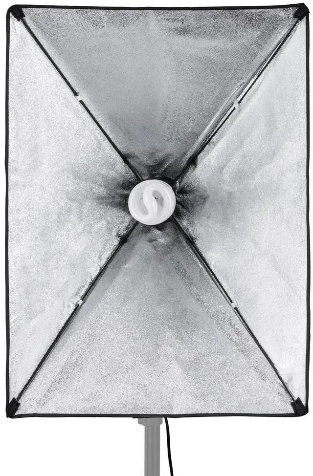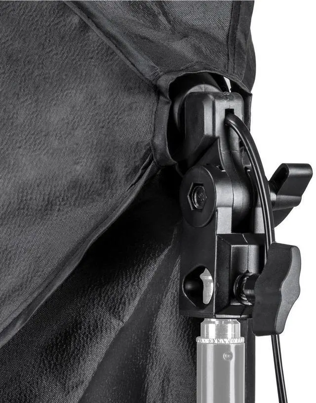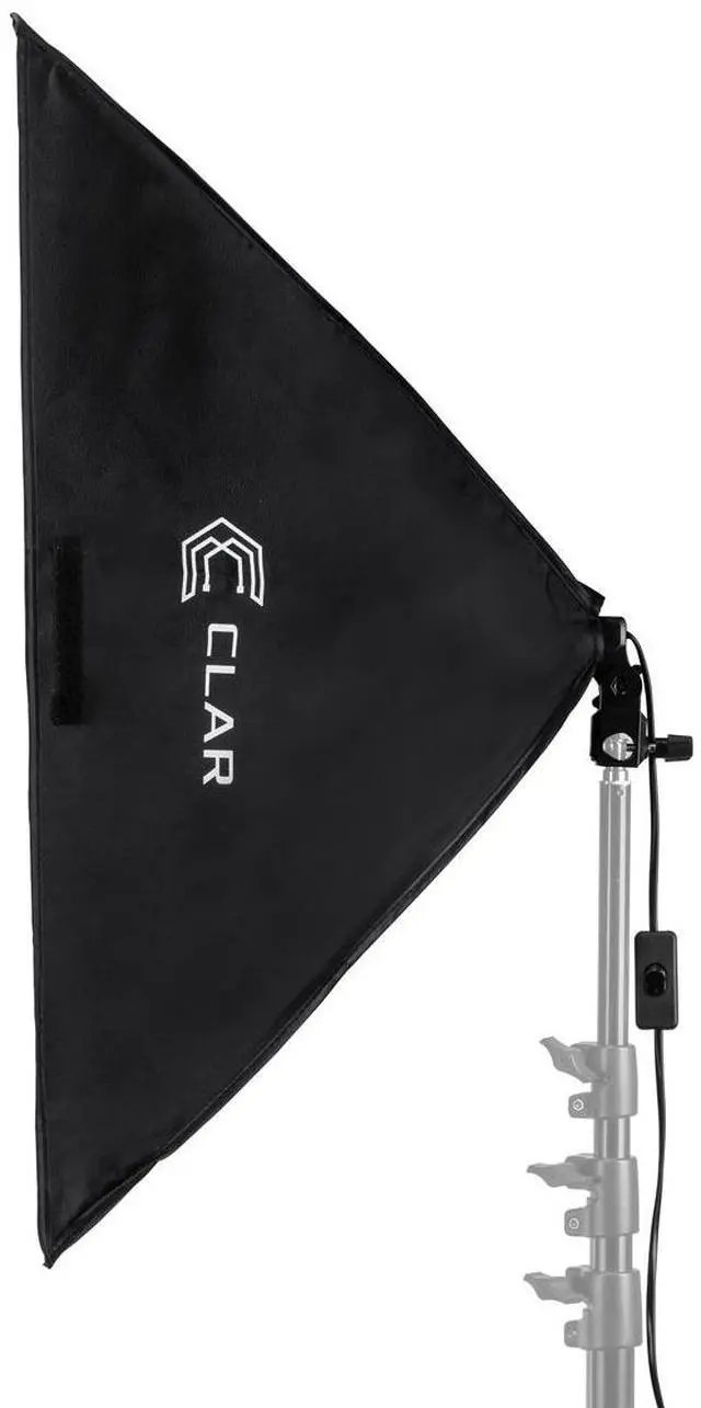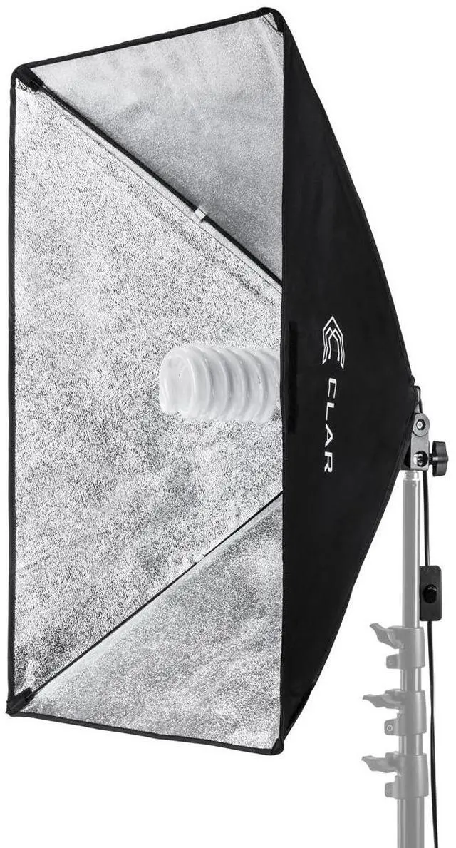 The CLAR 20" x 27" Fluorescent SoftBox with AC Plug and Spiral 85W Bulb is easy to assemble and keeps its cool despite the high output. The unit comes with a flicker-free compact fluorescent, daylight balanced spiral bulb, rated at 5500 degrees Kelvin. 85 watts in fluorescent technology translates into 350 watts of quartz light output to deliver much more lumens per KW. Even more, the softbox hardware snaps into place, similar to our popular EZ Lock system. Screw the bulb into the socket, unfold the softbox, connect to an AC source and flip the switch.