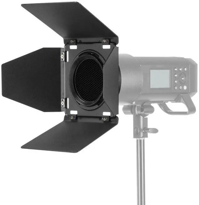 Obtain the right lighting results using the Flashpoint BD-08 Barndoor for XPLOR 400 Pro. This kit contains a four-leaf barndoor, four gel filters (red, blue, green, and yellow), a 20½ honeycomb grid, and a two-piece mounting adapter. Just insert filters and grid into the adapter and attach it to your XLOR 400 Pro's reflector. Should you want to use the barndoor, too, just snap on top of the adapter ring. While the kit is primarily designed for XPLOR 400 Pro flash, it may be compatible with other select flashes.
