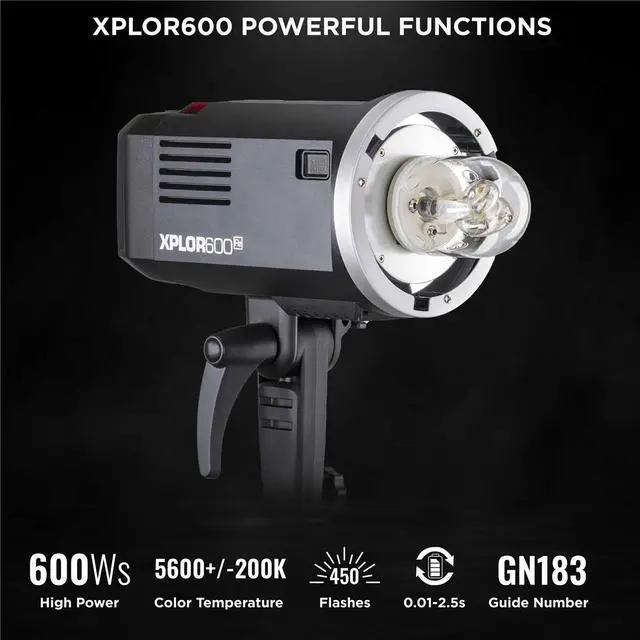 R2 enabled family communicate seamlessly: the lithium powered Zoom Li-on Canon, Nikon and soon, Sony speedlights, the Zoom AA alkaline energized speedlight, the fantastic Streaklight 360 Canon and Nikon TTL powerhouse, and this masterful 600ws XPLOR600 monolight. Older Flashpoint flashes can be fired and controlled off camera through the R2 Radio Remote Receiver FPRRR2RC to remote link seamlessly. This is all you have ever wanted in a traveling monolight. The compact XPLOR600 can be set to a wide range of 9 f/stop power levels from 1/256 to full in 1/3 stop increments, whe t her in hand or R2 wireless remote. Recycle speed is exceptionally fast, from. 01 to 2.5 seconds with a built-in cooling fan to keep it cool and stabile. All of these system functions are displayed clearly on the generous dot matrix LED display, including the link to the built-in 32 channel R2 2.4GH z Radio Remote Receiver that responds to yourevery whim. The LED modeling lamp is gentle on your batteries energy reserve, with a special timer for auto shutoff. The XPLOR600 can be triggered traditionally, as well, by