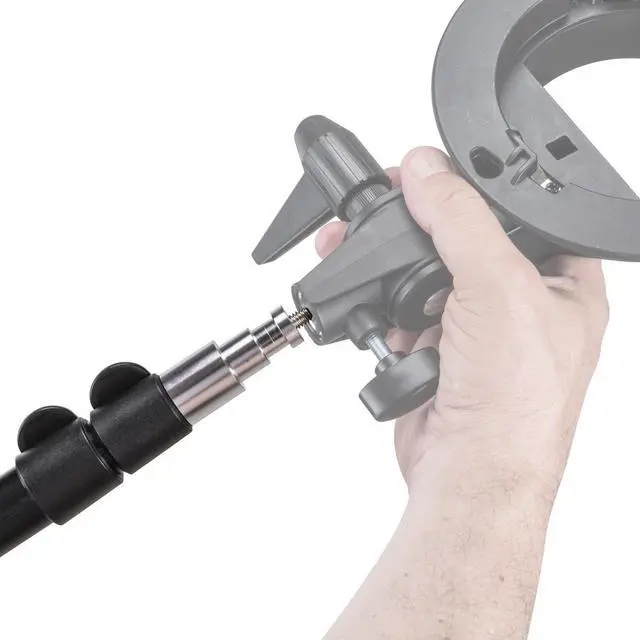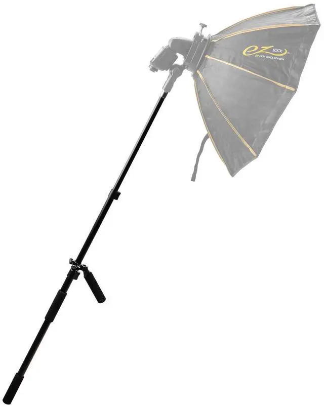 Because capturing the perfect shot often requires mobility and flexibility, the Flashpoint SpeedPod+ Telescopic Handle is designed to facilitate dynamic photo and video work, whether on location or in a studio setting. This versatile tool includes a 3-section handheld telescopic pole, a lockable swivel handgrip, and an adjustable flag-holding strap, all engineered to optimize your shooting experience. Constructed from lightweight yet robust aluminum, the telescopic pole can comfortably support up to 5.0 lb of payload, extending to a maximum height of 5.3 '. It features a built-in 5/8" adapter with a 1/4"-20 stud for easy attachment of various equipment.