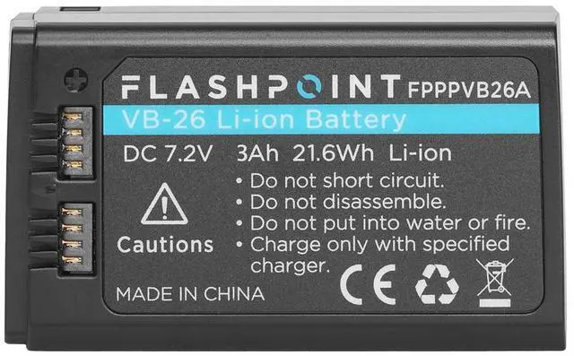 Photographers have consistently praised the VB-26 for its longevity and consistent performance, even over extended periods of use. Whether you're shooting a wedding, a corporate event, or a fast-paced sports game, this battery remains a steadfast ally, providing the power you need when you need it most. Choose the Flashpoint VB-26 Li-ion Battery for its compatibility with your trusted Flashpoint Zoom Speedlights and for the peace of mind that comes from having a power source that won't let you down. Experience the freedom to shoot harder, faster, stronger, and longer, with a battery that's as reliable as it is powerful.