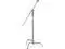 Take your photography or videography to the next level with the 40" Master Raiser C-Stand with Sliding Leg Kit, complete with a 2.5" Grip Head and 40" Grip Arm with Hex Stud in a sleek silver finish. This professional-grade stand, designed by Kupo, is equipped with two spring-loaded legs that open in fixed positions, providing stability and balance. The third leg is uniquely adjustable in height, allowing for easy modification by simply loosening a locking knob and sliding it along the main riser section. This feature is particularly useful when working on uneven terrain or inclines, as it allows for the leveling of the stand for optimal equipment positioning.