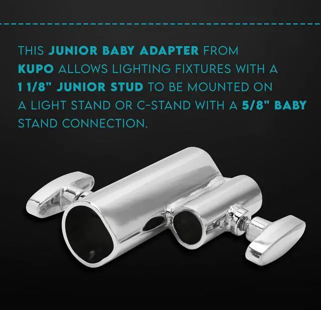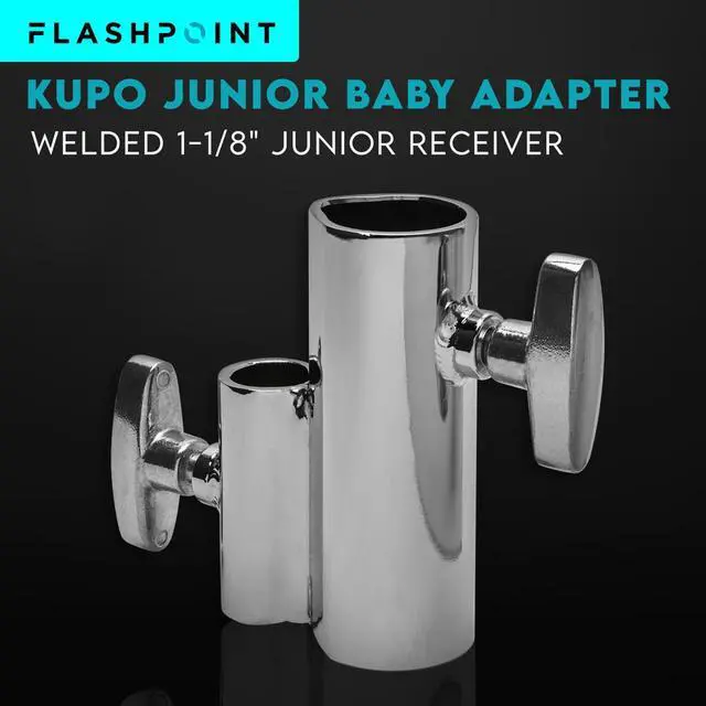 Why settle for less when you can enhance your photography lighting setup with the Flashpoint 1-1/8" to 5/8" Junior Baby Adapter? This essential tool is engineered to elevate the stability and versatility of your lighting equipment, making it a must-have for photographers and filmmakers alike. Designed to seamlessly bridge the gap between lighting fixtures with a 1-1/8" junior stud and light stands or C-stands featuring a 5/8" baby stand connection, this adapter significantly expands the adaptability of your gear. Crafted from solid steel and finished with a chrome plating, the Flashpoint Junior Baby Adapter is built to withstand the rigors of professional use, ensuring long-lasting durability and consistent performance.