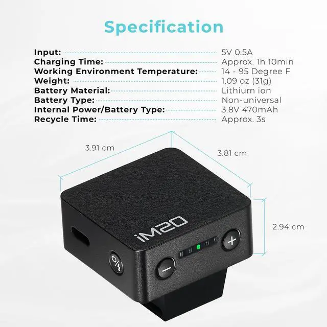Gain complete control over your lighting with the iM20's five-level adjustable power settings. Whether you're experimenting with creative lighting techniques or capturing professional-grade images, this versatile feature allows you to tailor the light output to meet your specific needs.