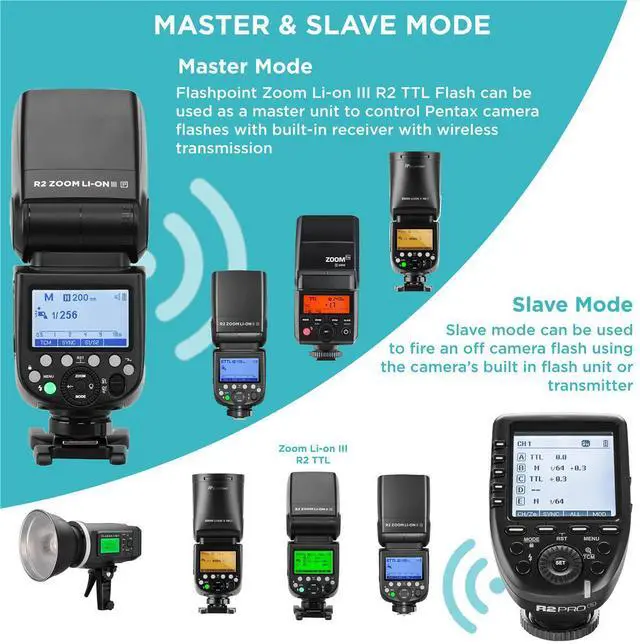 The Zoom Li-on III R2 TTL Speedlight Flash also offers wireless control via the proven R2 Wireless system, making it an excellent choice for weddings, events, sports, and everyday flash photography. It also includes 2 optical slave modes and a stroboscopic mode for traditionalists.