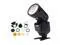 But the innovation doesn't stop there. The package also includes the Flashpoint Round Head Flash Accessory Kit, a comprehensive set of tools designed to help you master the art of light manipulation. The round head features a magnetic ring accessory mount for easy installation of a wide range of modifiers, including Barn Doors with 4 Flags, a Diffusion Dome, 30 1/2 Honeycomb Grid, Wide Angle Diffuser, 6 Hard Plastic Color Correction Gels, Filter/Gel Holders, Spot Light Snoot, and the requisite BounceScoop. This expertly curated accessory kit is designed for the eVOLV200 Round Head, allowing for quick mounting and stacking as needed for limitless light modification.