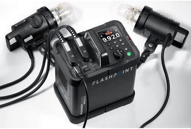 These settings can be managed via the R2 remote transmitters or directly on the pack's large LCD panel. The R2 Wireless Flash System is a cornerstone of this kit, providing an advanced 2.4GH z radio remote with TTL and HSS capabilities. It ensures reliable triggering, group mode selectivity, and a strong signal strength across compatible devices, including Canon, Sony, Nikon, Fujifilm, Panasonic, Olympus, and Pentax camera systems. In summary, the Flashpoint XPLOR Power 2400 Pro R2 Power Pack Kit with Two H2400P Flash Heads is a versatile, durable, and reliable solution for photographers seeking powerful lighting with professional-grade control and compatibility.