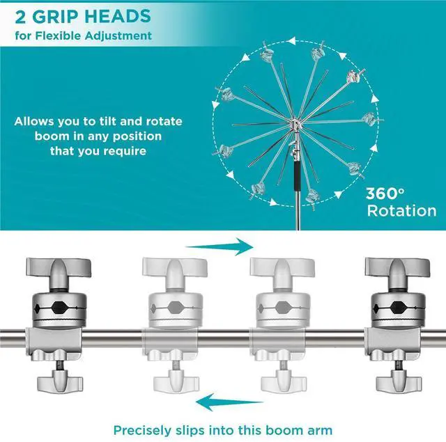 The kit's extension gobo rod arm precisely supports light modifiers, arms, scrims, cantilever flags, gobos or smaller lights, into exact position. The 5/8" diameter arm and Grip/Gobo/KnuckleHead combination can also be used as a short boom, meaning it is tremendously helpful on still-life sets, supporting everything from collapsible reflectors to soup spoons in clamps hovering over cereal bowls. The cast aluminum head design has interlocking facing surfaces to keep a fixed position when supporting accessories on the steel and the jaws open (to a maximum of 1-1/8") to hold rods, dowels and studs.