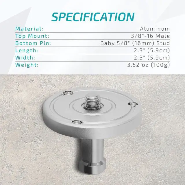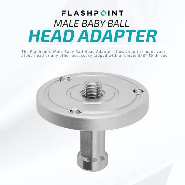 This makes it an ideal choice for professionals and hobbyists alike. The Male Baby Ball Head Adapter is not just a piece of mounting hardware; it's a specialized tool designed to enhance your photography experience. Whether you're looking to attach a camera or a light stand to a ball head, this adapter is the perfect solution. Its targeted design makes it an excellent choice for those seeking a more specialized option compared to generic mounts. In essence, the Flashpoint Male Baby Ball Head Adapter is a testament to practical design and functionality, offering a specialized solution for your photography needs.