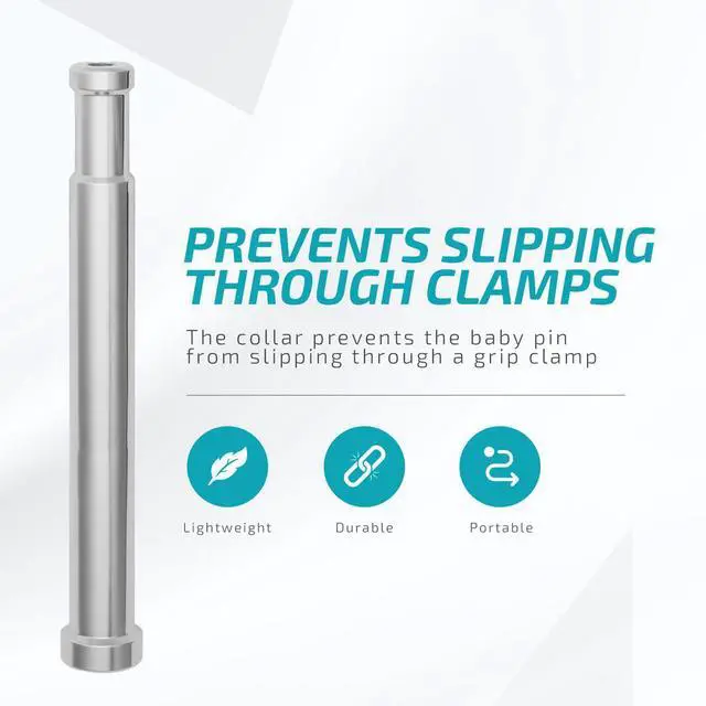Make your lighting setup more versatile and secure with the Flashpoint 6" Baby Pin with Collar. This essential grip equipment features a robust steel construction, ensuring durability and reliability for your most demanding studio or on-location shoots. The baby pin is designed with a precise 6-inch length, providing ample space to accommodate a variety of lighting accessories. The integrated collar at the base of the pin serves a critical function - it prevents the pin from sliding completely through a grip head or clamp, adding an extra layer of safety and stability to your setup.