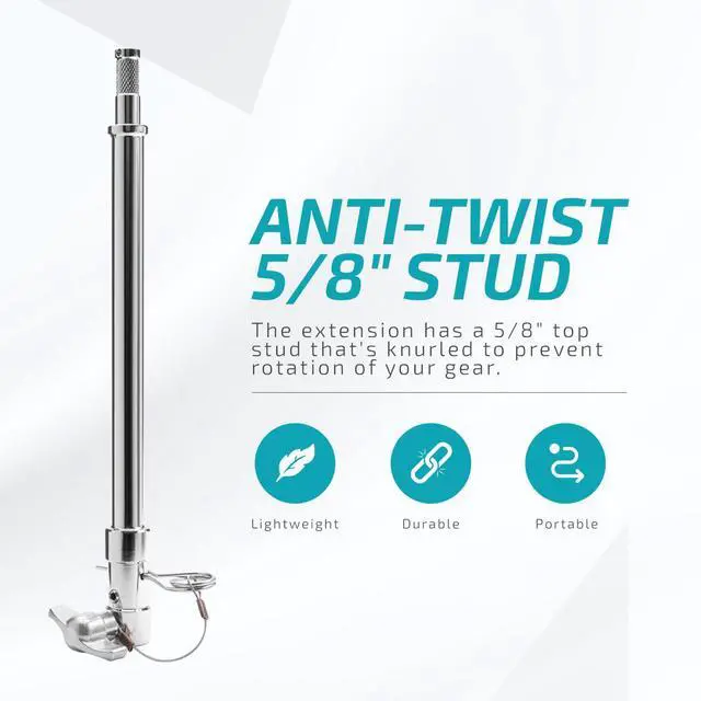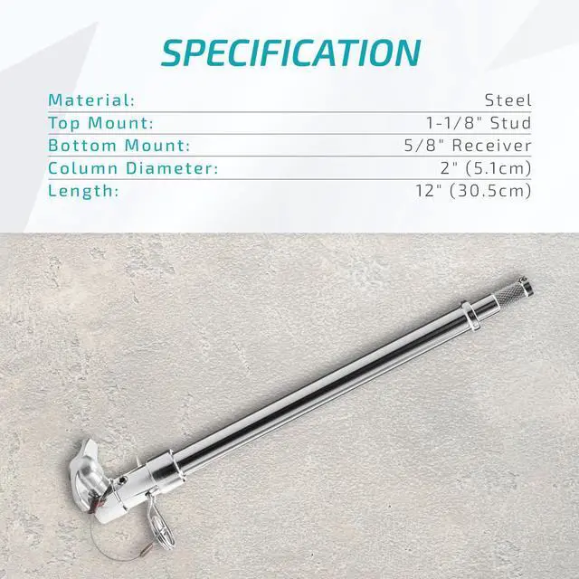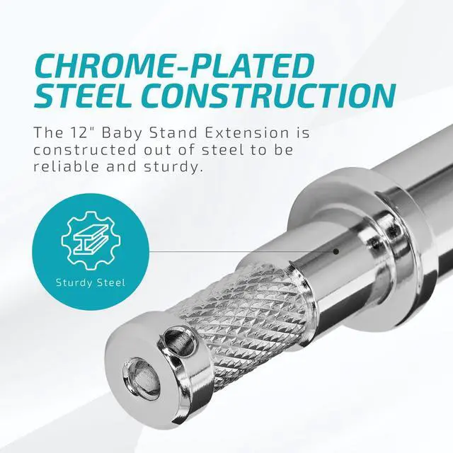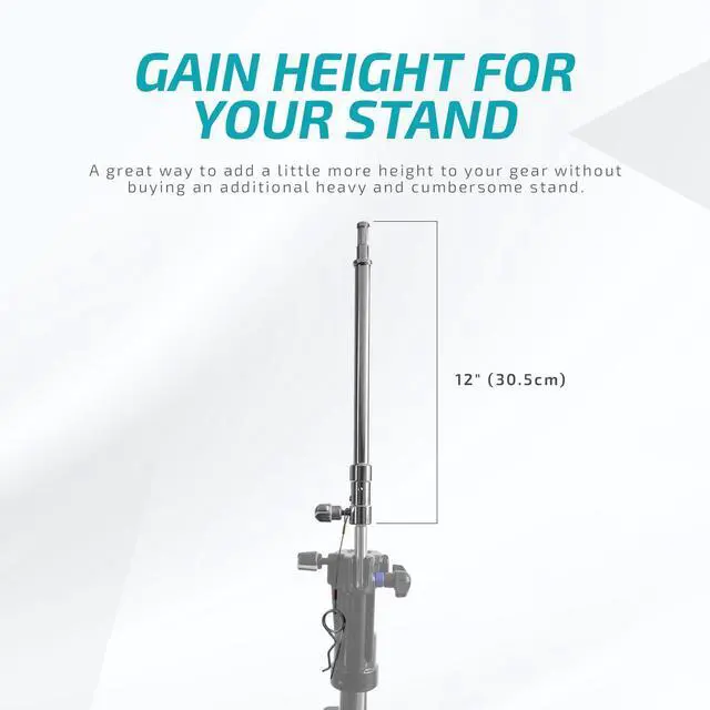 Be prepared to elevate your photography setup with the Flashpoint 12" Baby Stand Extension. This versatile accessory is an ideal solution for those seeking to add extra height to their existing stands without the need for a complete replacement or the addition of a bulky, cumbersome stand. Constructed from robust, chrome-plated steel, this sturdy stand extension promises durability and reliability. It features a unique combination 5/8" receiver and 1-1/8" pin at the mounting end, making it compatible with a wide range of industry-standard 5/8" studs. For added flexibility, the tightening knob can be removed, allowing the base to slip seamlessly into a stand with a junior receiver.