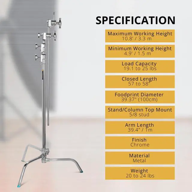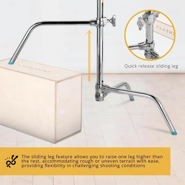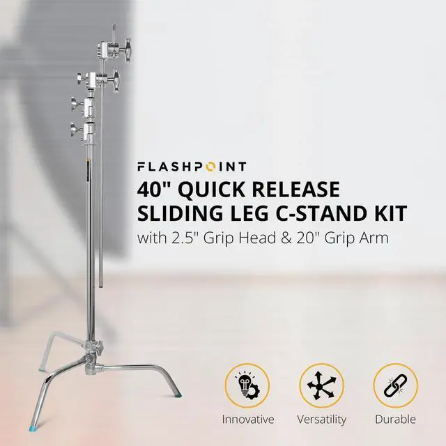 With this stand, your creative vision will never be compromised. Experience the future of stability and control in the world of C-stands with the Flashpoint 40" Quick Release Sliding Leg C-Stand Kit.