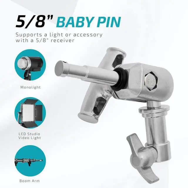 What sets the Flashpoint Heavy-Duty Swivel Pin apart is its exceptional design, tailored to provide both flexibility and strength for your photographic equipment setups. This robust accessory is essential for photographers and videographers seeking to add dynamic articulation to their stands or booms. Constructed from high-grade steel, this durable swivel pin promises longevity and resilience under the rigors of frequent use. One end of the swivel pin is designed to effortlessly slip onto a male 5/8" pin, ensuring compatibility with a wide array of lighting equipment and accessories that feature a 5/8" receiver.