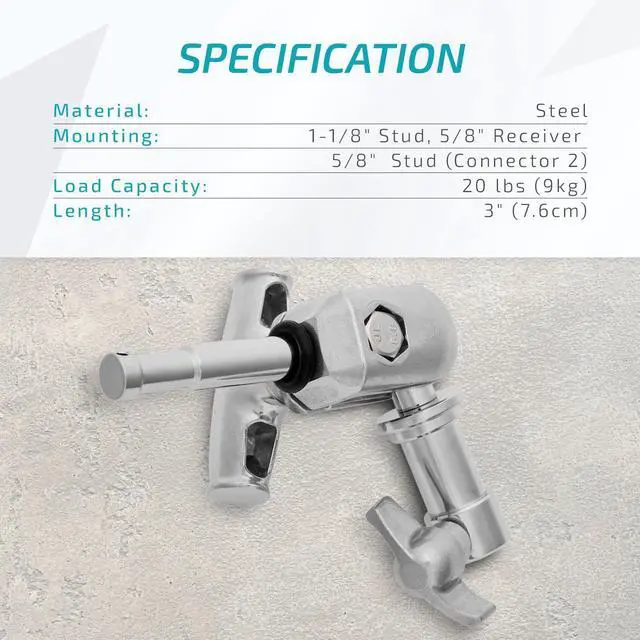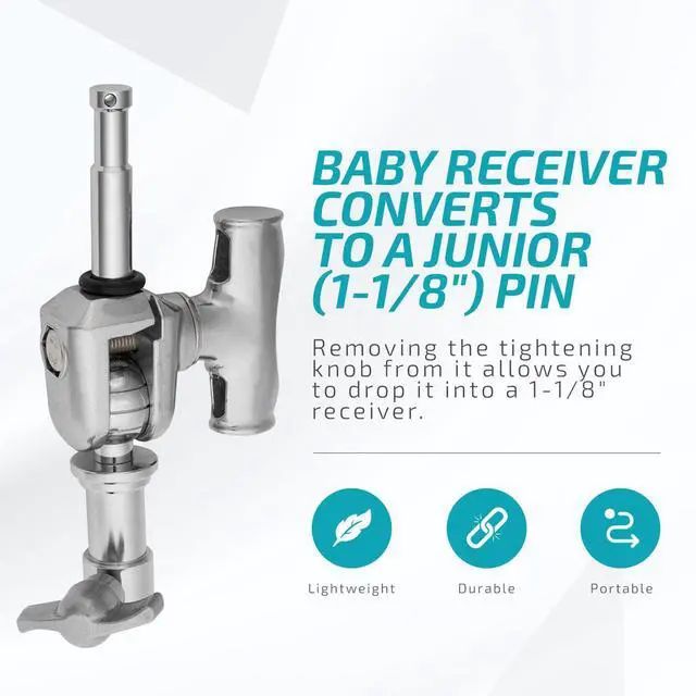 The opposite end boasts a versatile ball joint, enabling a smooth 180-degree swivel of the attached fixture, allowing for precise positioning and optimal lighting angles. The meticulous engineering of the Flashpoint Heavy-Duty Swivel Pin is evident in the large, rubber-coated T-handle, which provides a comfortable grip for secure locking in any chosen position. This feature ensures that your equipment remains stable and secure, even during extended shooting sessions. Further enhancing its versatility, the barrel at the receiver end measures a substantial 1-1/8", accommodating a variety of mounting options. For added convenience, the tightening knob can be removed, allowing the swivel pin to be seamlessly integrated into a 1-1/8" receiver, making it a reliable and sturdy choice for professionals who demand the best in their equipment.