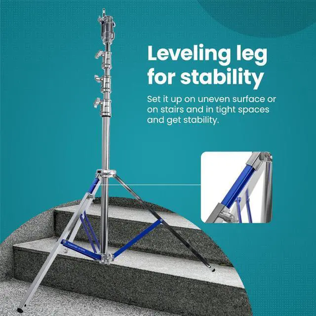 Stability Beyond Imagination: The wide leg spread of 5.1 ' (1570mm) transforms even the most chaotic environments into serene havens of creativity. No vibration, no wavering; only the serene confidence that your masterpiece will be captured with unshakable stability. Despite its imposing stature, this cine stand is designed for your convenience. Fold it down to a mere 4.9 ' (1480mm) when it's time to pack up and move, or simply marvel at the 29.3 pounds ( 13.3 kg) of engineering brilliance that is so incredibly manageable. Whether you're shooting in-studio or trekking through the wilderness, this stand is your unwavering companion. The versatile combo head, included with this masterpiece, allows you to fine-tune your equipment with unparalleled precision. It's more than a head; it's your gateway to photographic nirvana. Make the Flashpoint 13.3 ' High Cine Stand Pro with Leveling Leg and Combo Head in Silver your creative confidante. It's not just a stand; it's your partner in bringing your vision to life, a testament to your unwavering commitment to the art of storytelling through visuals. It's not just a purchase; it's an investment in your artistic journey, and a declaration of your dedication to excellence.