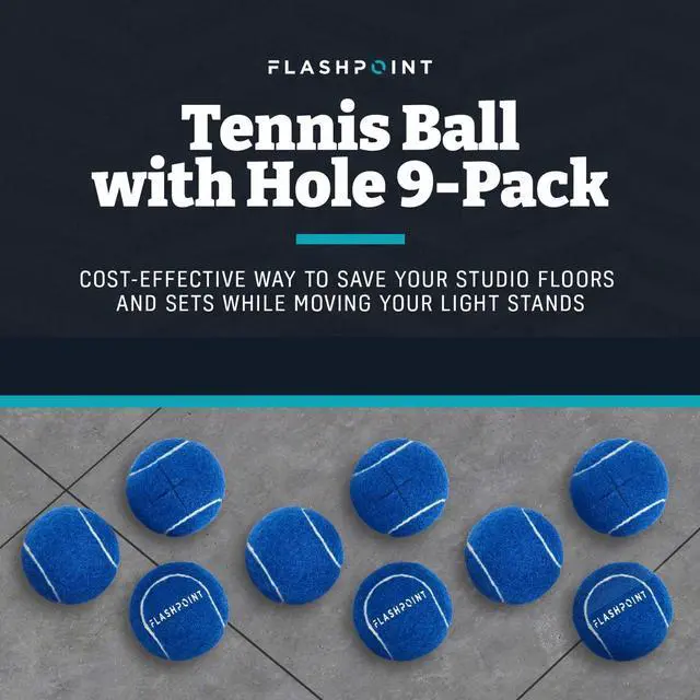 This simple yet effective solution ensures that your focus remains on capturing the perfect shot rather than worrying about the aftermath of moving gear. In summary, the Flashpoint Pre Cut Tennis Ball for Light Stands (9-Pack) offers a practical, efficient, and cost-effective way to maintain the integrity of your studio space. They are an indispensable tool for photographers and videographers who value their workspace and seek to preserve its condition for years to come.