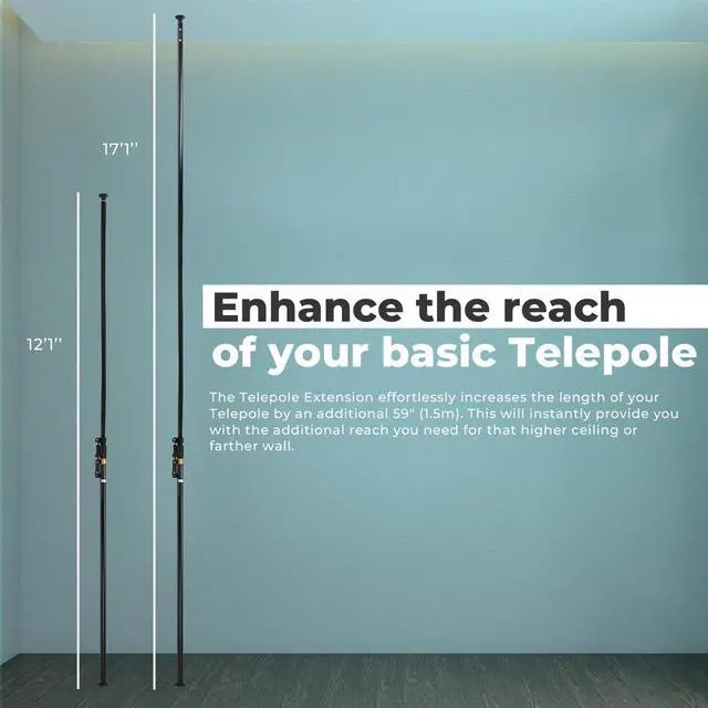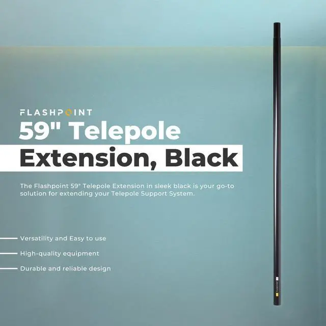 This will instantly provide you with the additional reach you need for that higher ceiling or farther wall. In summary, the Flashpoint 59" Telepole Extension (Black) is a reliable, easy-to-use, and versatile addition to your Telepole Support System, designed to meet your needs for extended reach.