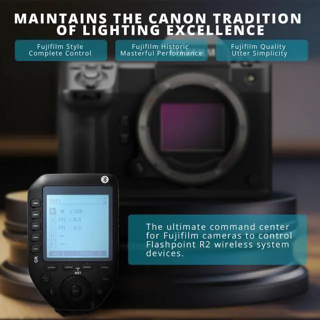 Experience complete control, utter simplicity, and masterful performance with the R2 XPro II 2.4GH z TTL Wireless Flash Trigger for Fujifilm Cameras.