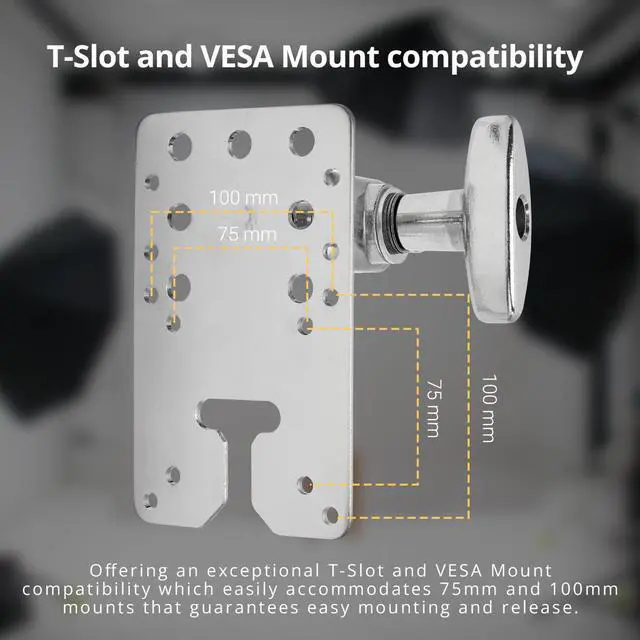 An innovative solution for your mounting needs, the Flashpoint T-Slot Wall Plate with a 3" Baby Swivel Pin and VESA Mount offers unparalleled versatility and adaptability. This meticulously crafted wall plate features strategically positioned holes, designed to accommodate a diverse range of equipment, making it an indispensable tool for any professional setup. The T-Slot Wall Plate's compatibility with both T-Slot and VESA Mounts, specifically 75mm mounts, ensures effortless mounting and release. This feature not only enhances convenience but also expands your creative possibilities, allowing you to overcome the challenges of working in confined spaces.