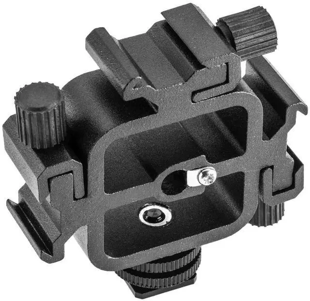 But the versatility of this bracket doesn't stop at lighting. It's also suitable for mounting a wide range of shoe mount accessories, including microphones, mixers, monitors, radios, wireless systems, and even sports cameras. With no additional hardware required, it can be mounted on any camera or stand, making it a must-have accessory in any photographer's kit. Experience the convenience and flexibility of the Flashpoint Shoe Mount Triple Bracket and elevate your photography or videography to new heights.
