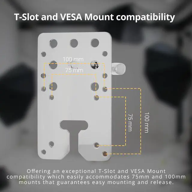 The locking feature adds an extra layer of security, helping to prevent production-related mishaps. The Flashpoint T-Slot Wall Plate's adaptability extends beyond its mounting capabilities. It provides a sturdy base that supports your artistic vision, whether you're setting up lighting for an impromptu outdoor shoot or a professional studio production. The VESA mount enhances this exceptional combination with a ratcheting lever that can be adjusted for complete and safe locking, even in the tightest areas. Thanks to their precise engineering, the ball joints offer a variety of positioning alternatives, ensuring maximum flexibility and accuracy.