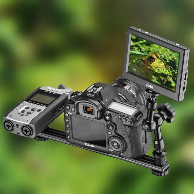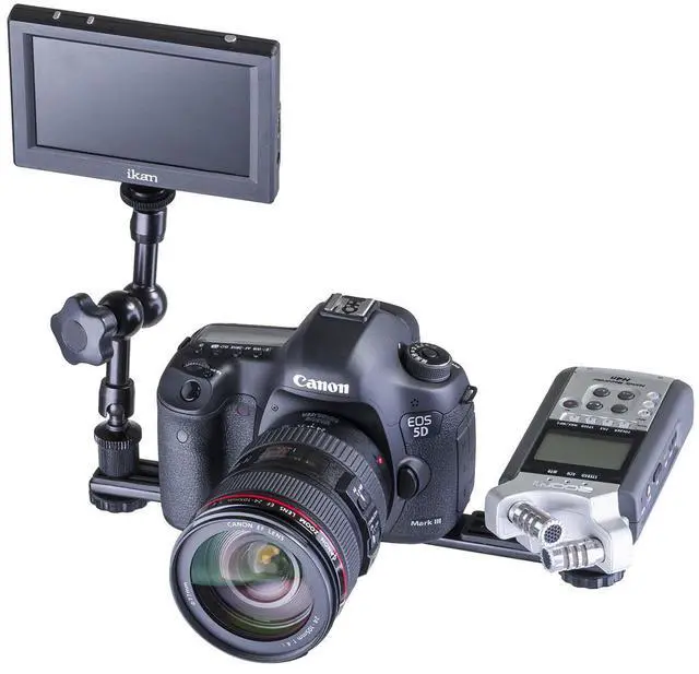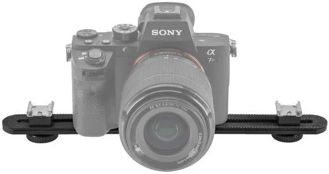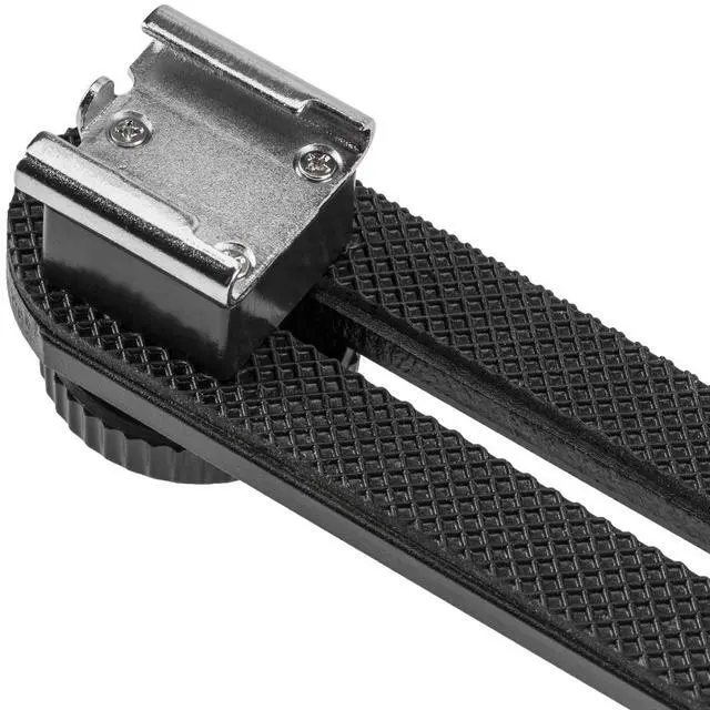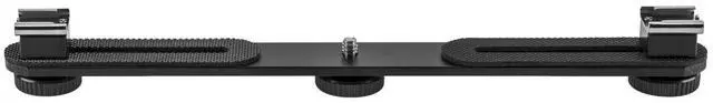 The Flashpoint Straight Bracket with Dual Shoes is a horizontal flash bracket that provides two cold shoes or 1/4"-20 screws that are situated on a 2-1/4" track on the end of the bar. The twin shoe solution makes for excellent macro photography, allowing the flexible use of two flashes to be aimed simultaneously at independent angles. Unlike the shadow-free flat lighting of a ringflash, two flashes can be used to add drama to a very close up object while still freezing the motion of the subject. Accessories such as LED lights, microphones, remote control, or any other shoe mount accessory can all be positioned on either side of your camera.