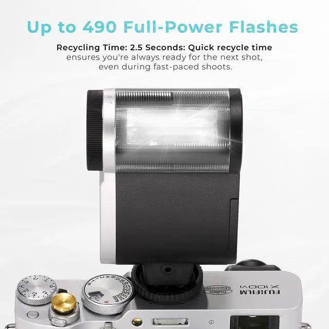 With its slim, flat design, the iA32 is easy to carry and perfect for travel, fitting comfortably in your camera bag or pocket. Experience fast performance with a quick 2.5-second recycle time, so you're always ready for your next shot.